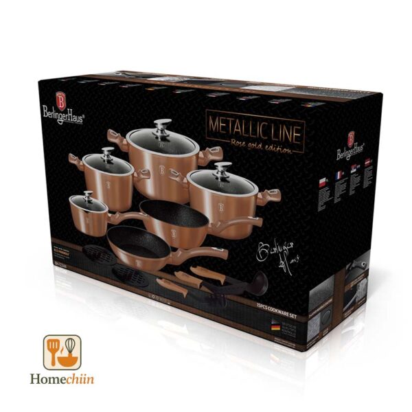 هر قطعه از سرویس ظروف Berlinger Haus BH 8168 مجهز به پایه القایی توربو است که گرمایش سریع و کارآمد را در انواع اجاق گاز، از جمله القایی، تضمین میکند.
